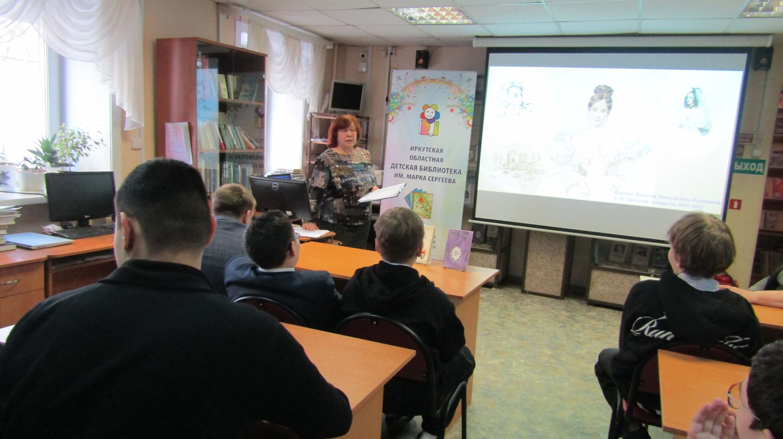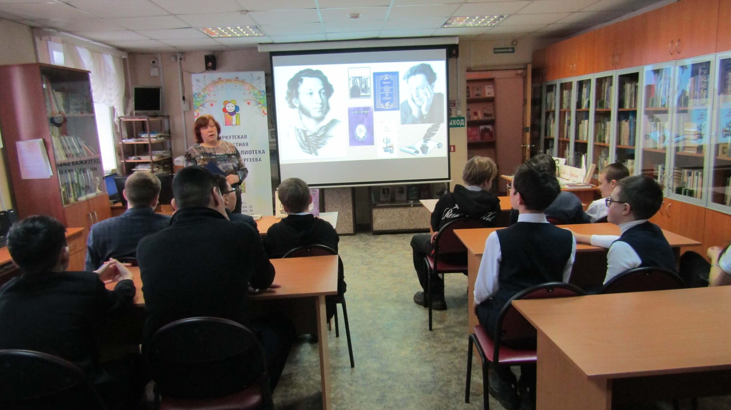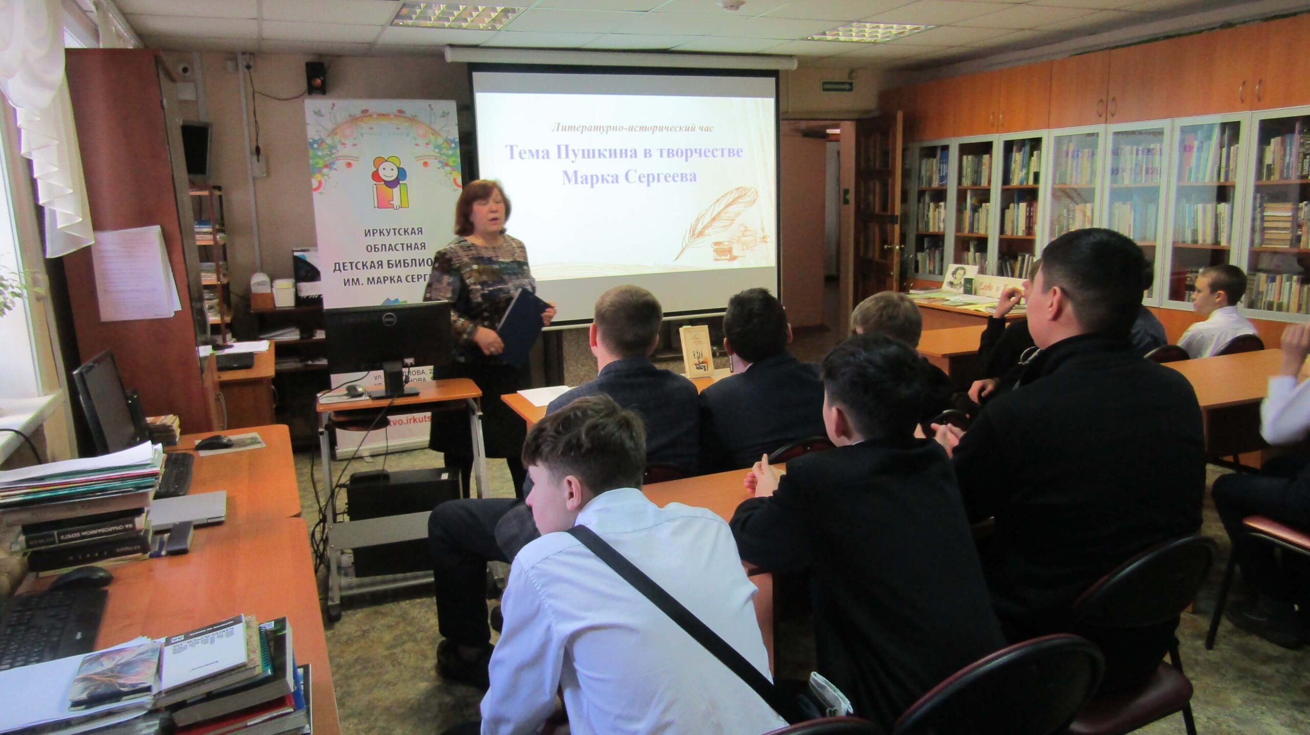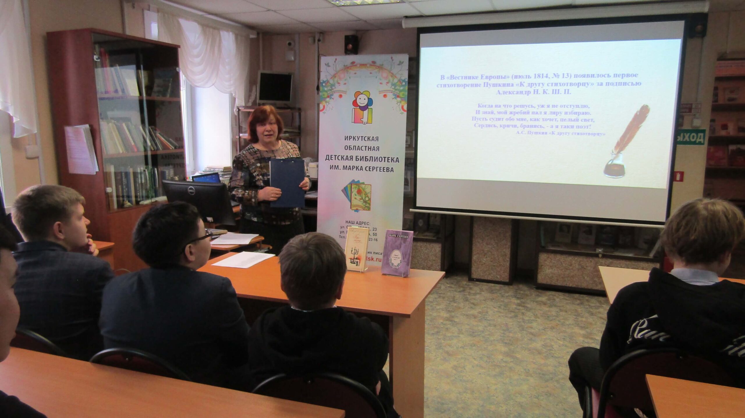Для читателей среднего школьного возраста в отделе краеведения и библиографии Иркутской областной детской библиотеки им. Марка Сергеева прошёл литературно-исторический час «”Перо поэта”: тема Пушкина в творчестве Марка Сергеева».