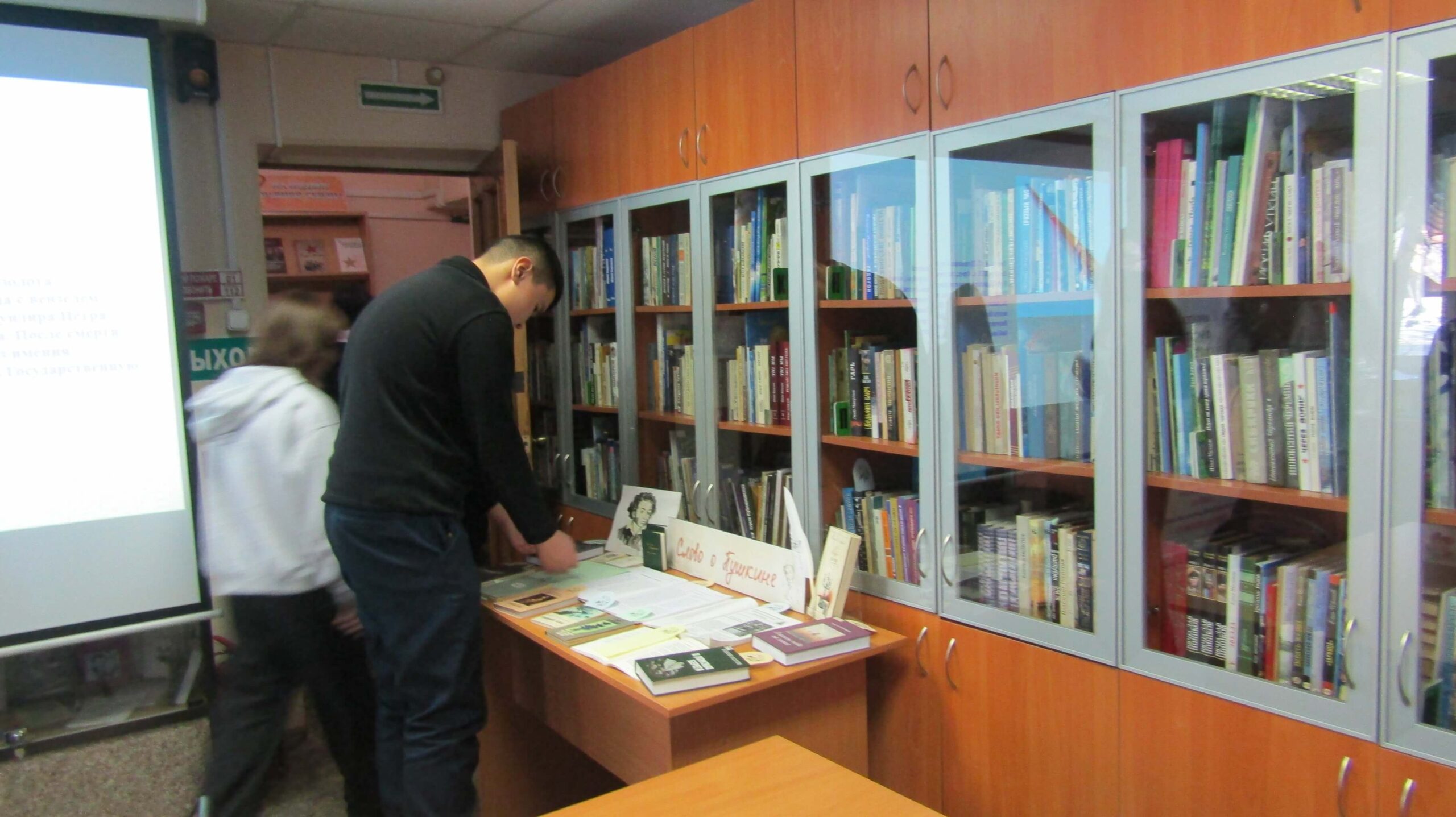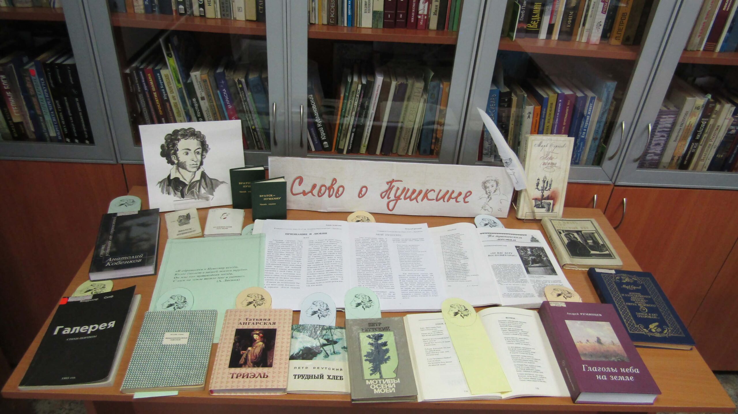 В завершение встречи ребята ознакомились с небольшой книжной выставкой «Слово о Пушкине». Там были представлены произведения Марка Сергеева и сборники поэтов Прибайкалья, коснувшихся в своём творчестве пушкинской темы. Среди них стихи Петра Реутского, Владимира Скифа, Анатолия Кобенкова, Татьяны Суровцевой и Татьяны Ангарской.
