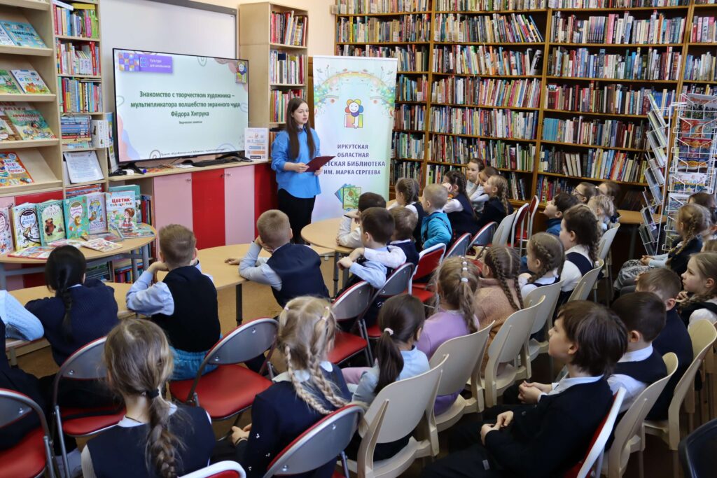 Для читателей младшего школьного возраста в Иркутской областной детской библиотеке им. Марка Сергеева прошло творческое занятие «Волшебство экранного чуда Фёдора Хитрука».