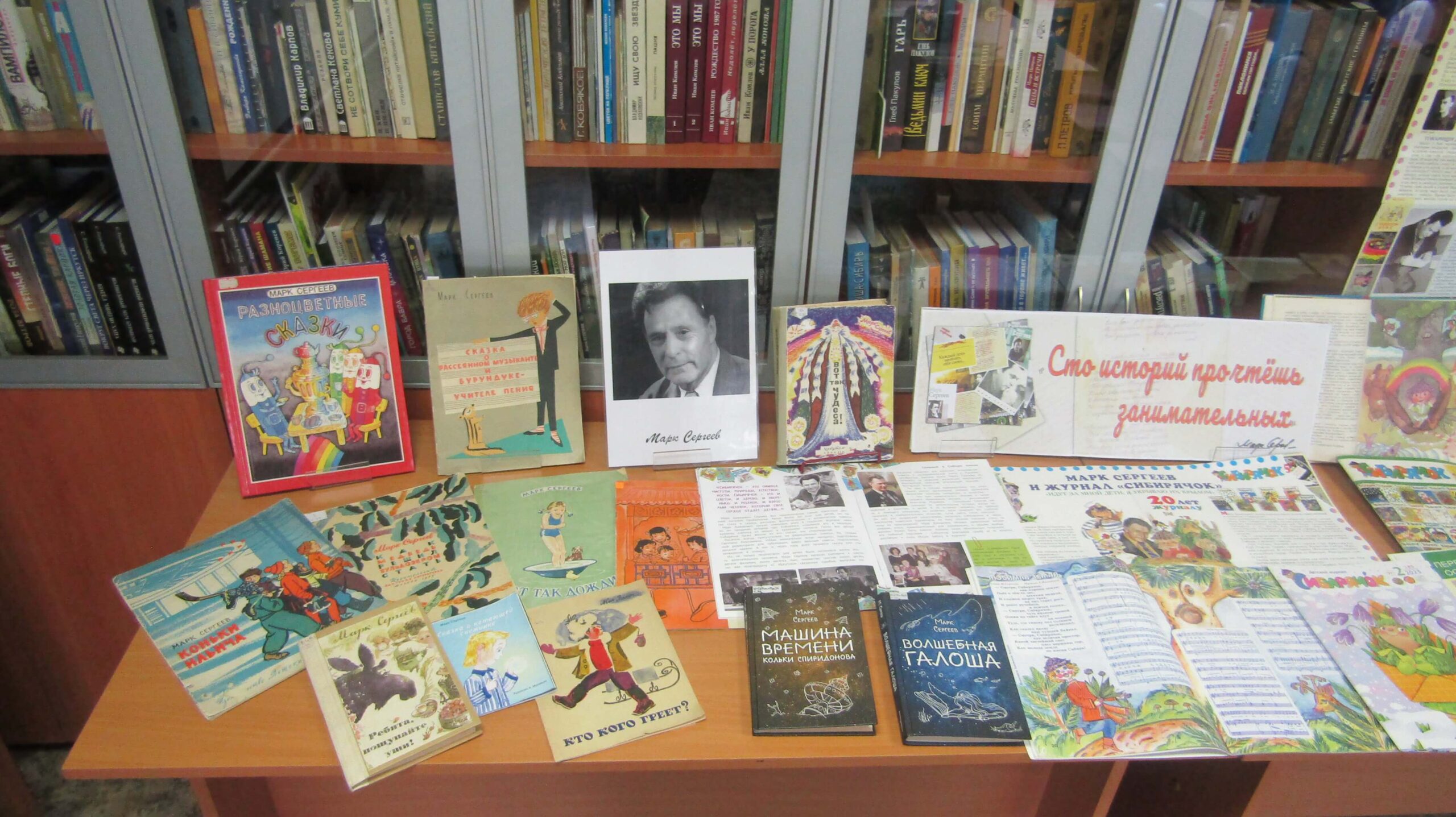 Книжно-иллюстративная выставка «Сто историй прочтёшь занимательных…» (6+; отдел краеведения, ул. Пискунова, 50) представлена книгами Марка Сергеева, чье имя много лет носит Иркутская областная детская библиотека.