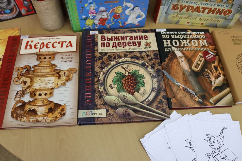 Библиотекарь прочитала стихотворение Джанни Родари «Чем пахнут ремёсла? Какого цвета ремёсла?» и познакомила ребят с книгами по декоративно-прикладному творчеству.