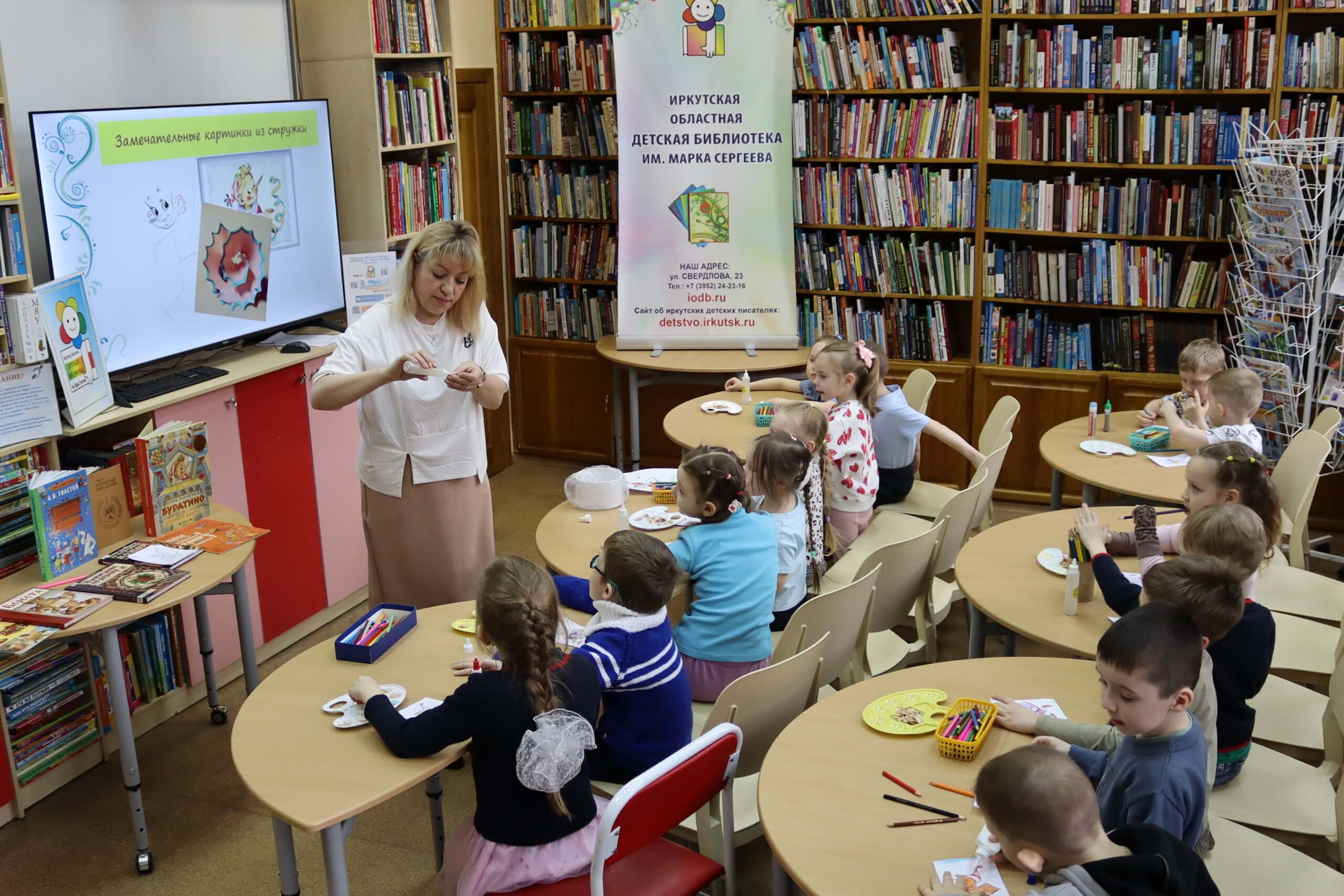 В дни Недели детской книги для самых юных читателей в Иркутской областной детской библиотеке им. Марка Сергеева прошло литературно-творческое занятие «Стружка от карандаша сказку вспомнить помогла».