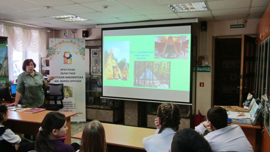 С помощью слайдов библиотекарь рассказала детям о древнем коренном сибирском народе – тофаларах. Много веков назад они обосновались в Саянских горах, которые стали их родиной. Ребята познакомились с историей, культурой, традициями и обычаями тофаларов и узнали много интересных фактов из их жизни.