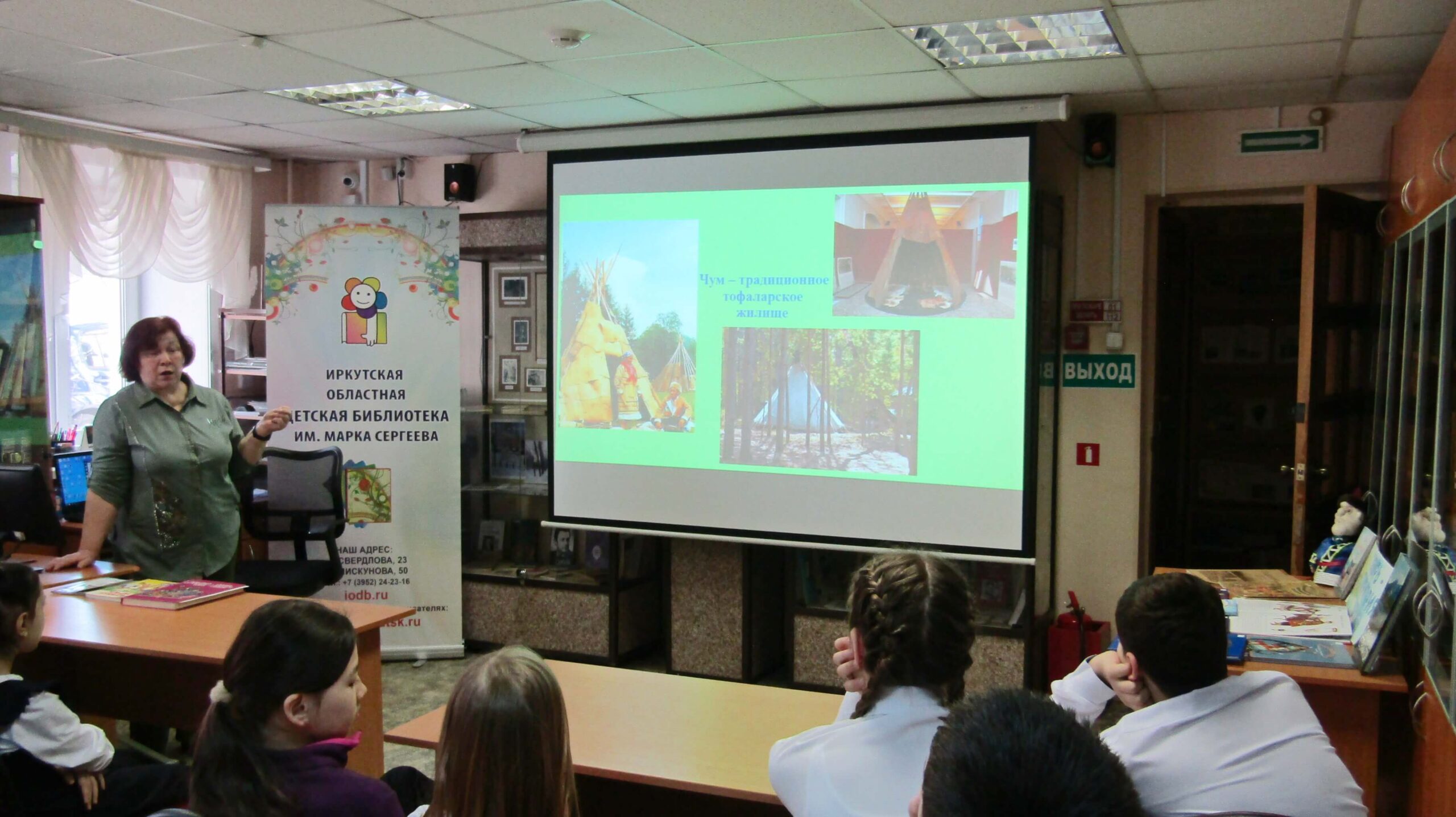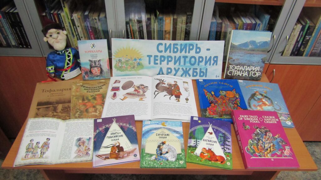 В завершение «путешествия» читатели познакомились с небольшой книжной выставкой «Сибирь – территория дружбы», где были представлены несколько книг о Тофаларии и тофаларах, сборники сказок коренных народов Сибири, а также книги серии «Мы живём вокруг Байкала», изданные библиотекой.