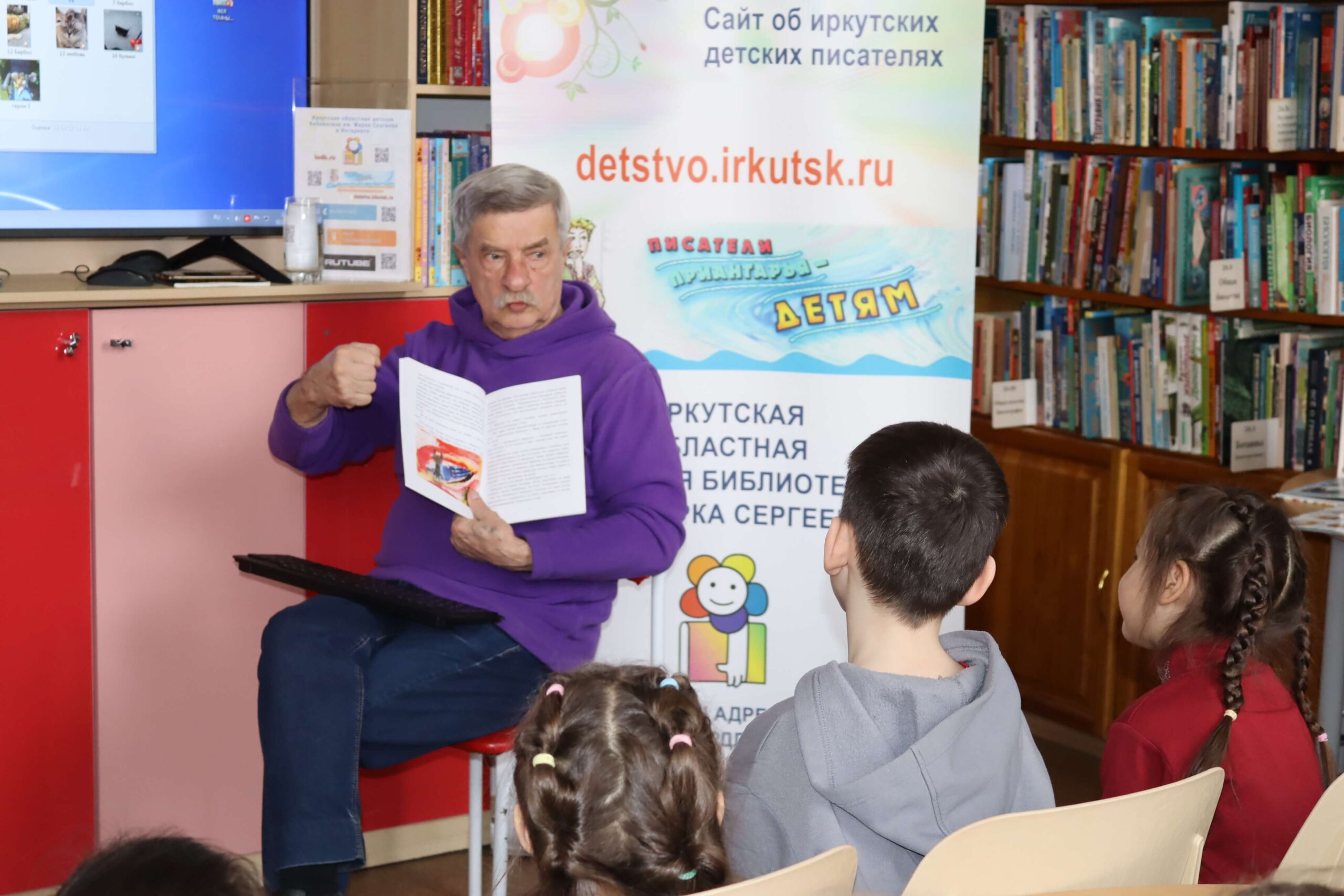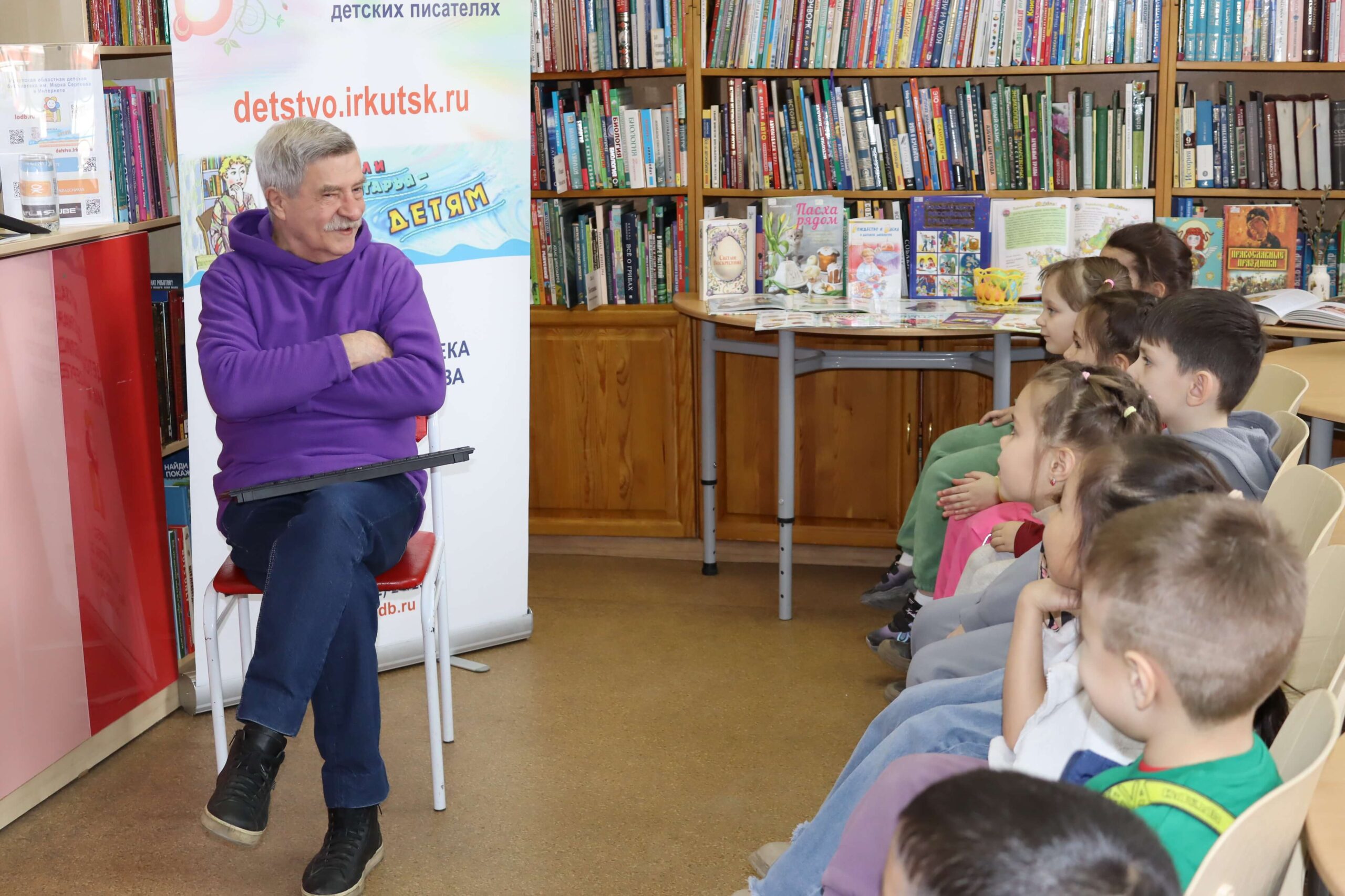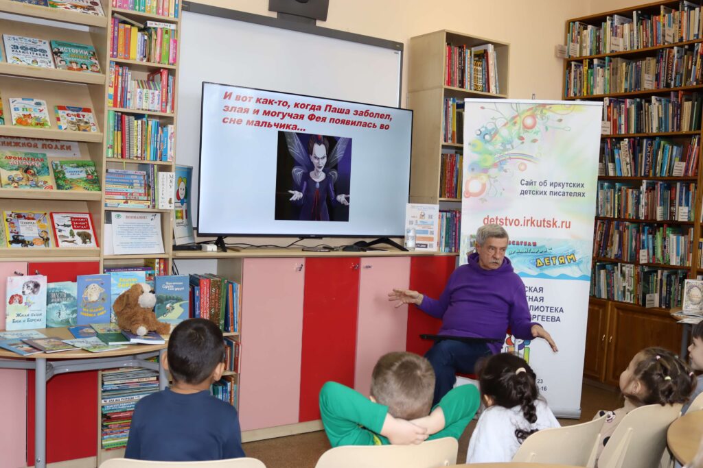 В дни Недели детской книги – 2026 для самых юных читателей и их родителей в Иркутской областной детской библиотеке им. Марка Сергеева 2 апреля прошла творческая встреча «Сказочное путешествие с иркутским писателем Евгением Хохряковым».