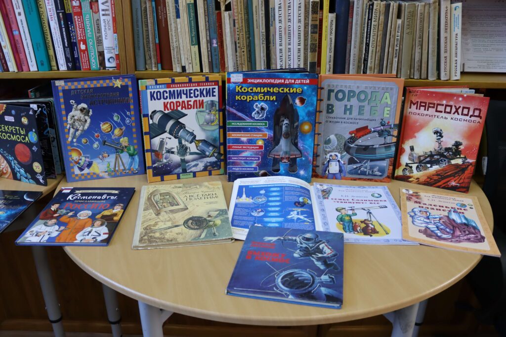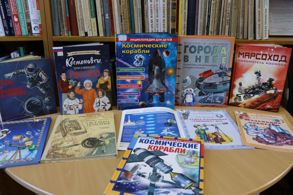 Книжная выставка «Время покорять космос» (12+) действует в отделе обслуживания читателей 10–15 лет. Здесь школьники могут погрузиться в увлекательный мир книг о космосе, расширить знания и вдохновиться на новые открытия в этой удивительной сфере. Посетители узнают, как был выведен первый искусственный спутник Земли и о людях, совершивших прорыв в космонавтике. Особое внимание уделено Юрию Алексеевичу Гагарину – первому человеку, покорившему космос, и достижениям нашей страны в этой области.