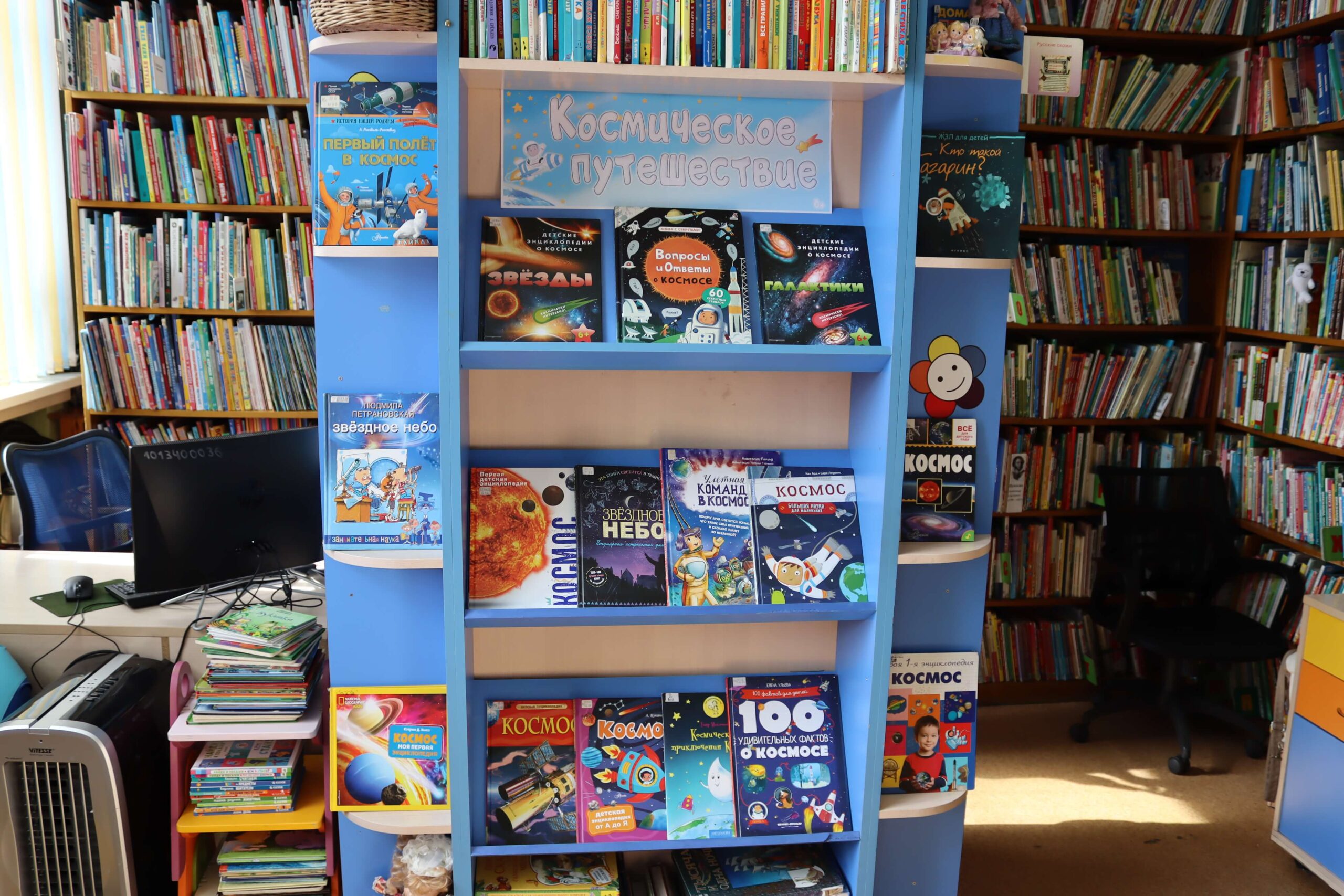 Книжная выставка «Космическое путешествие» (6+) развёрнута в отделе обслуживания читателей до 10 лет. На выставке представлены научно-популярные и энциклопедические книги для детей. Среди них «100 удивительных фактов о космосе» Елены Ульевой, «Космическая азбука» Владислава Горькова, «Космические корабли» Володара Шимановского, «Первый космонавт» Виктора Синицына, «Тайны Вселенной» и «Ау, инопланетяне!» Ефрема Левитана, «Звёздная книга. Первые уроки астрономии» Андрея Цуканова и другие. Эти книги расскажут юным читателям о покорении космоса, о наших выдающихся соотечественниках. В их числе основоположник современной космонавтики Константин Эдуардович Циолковский, конструктор ракетно-космических систем Сергей Павлович Королёв, первого космонавта Земли Юрий Алексеевич Гагарин. Также юных любителей книг узнают о животных, побывавших в космосе, и орбитальных станциях. Фотографии и иллюстрации в книгах помогут читателям погрузиться в загадочный мир звёзд и планет.