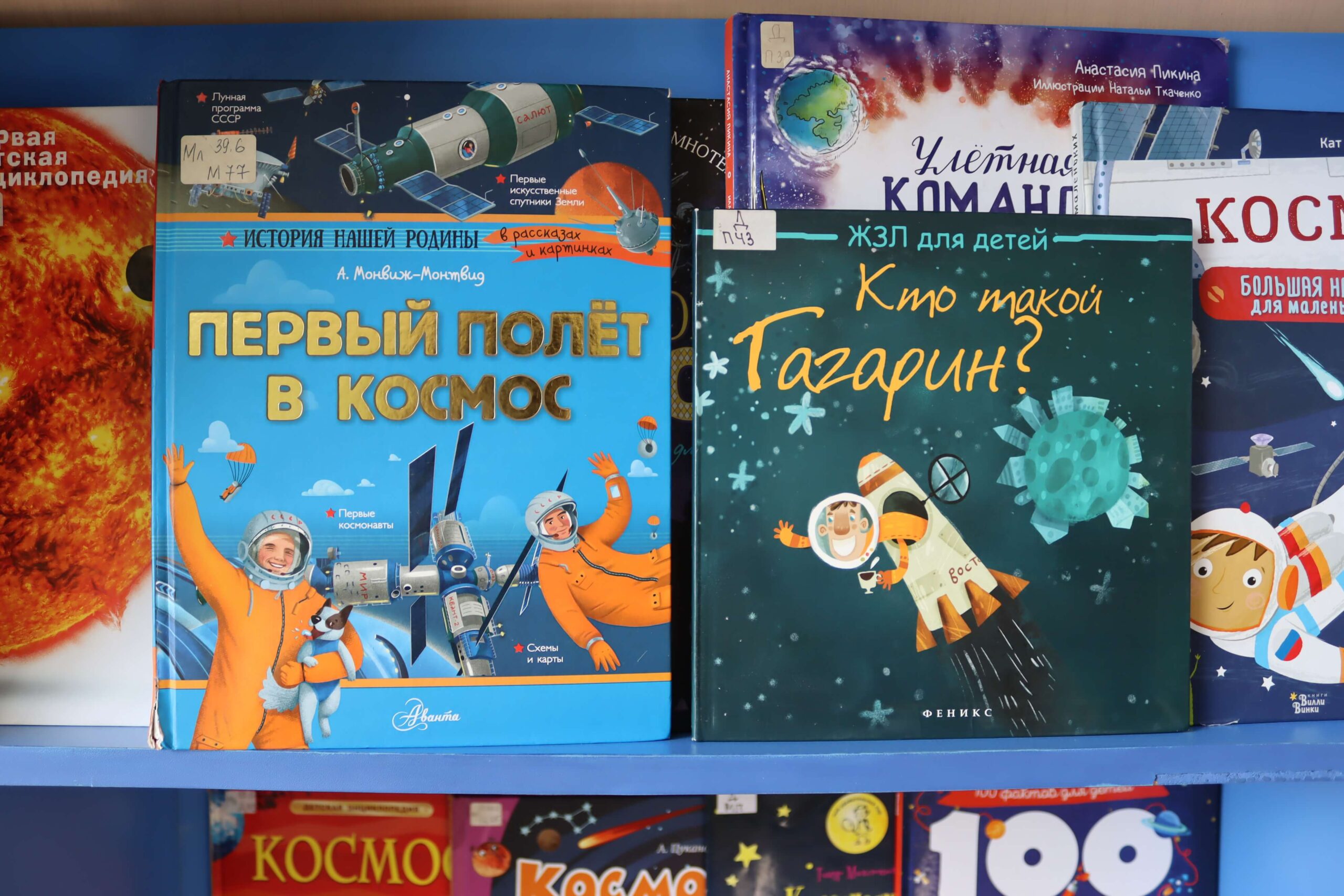 На выставке представлены книги известных авторов, написанные простым и доступным языком. Среди них «Рассказы о Гагарине» Юрия Нагибина – о жизни и подвиге первого космонавта планеты, «Первые покорители космоса» Дарьи Чудной – история о собаках-космонавтах, верных помощниках учёных, «Космонавт. Руководство для начинающих» Луи Стоуэлла – для тех, кто мечтает о космических путешествиях, «Вперёд, в космос! Открытия и достижения» Вячеслава Климентова – книга, которая позволяет заглянуть в кабину космонавта и увидеть скафандр для собак, «Манфред Баур. Планеты Солнечной системы» – увлекательная информация о далёких мирах.