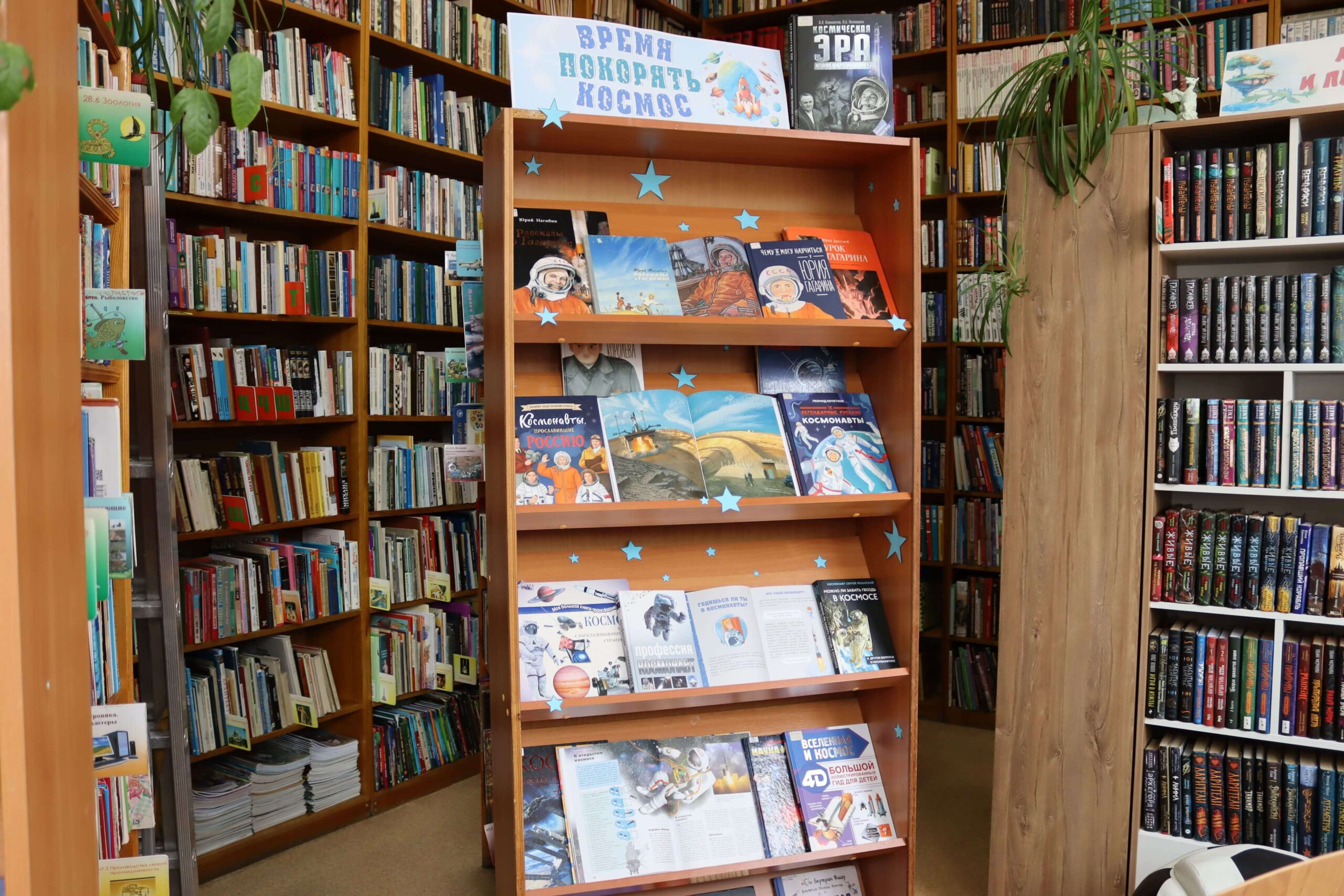 Книжная выставка «Время покорять космос» (12+) действует в отделе обслуживания читателей 10–15 лет. Здесь школьники могут погрузиться в увлекательный мир книг о космосе, расширить знания и вдохновиться на новые открытия в этой удивительной сфере. Посетители узнают, как был выведен первый искусственный спутник Земли и о людях, совершивших прорыв в космонавтике. Особое внимание уделено Юрию Алексеевичу Гагарину – первому человеку, покорившему космос, и достижениям нашей страны в этой области.