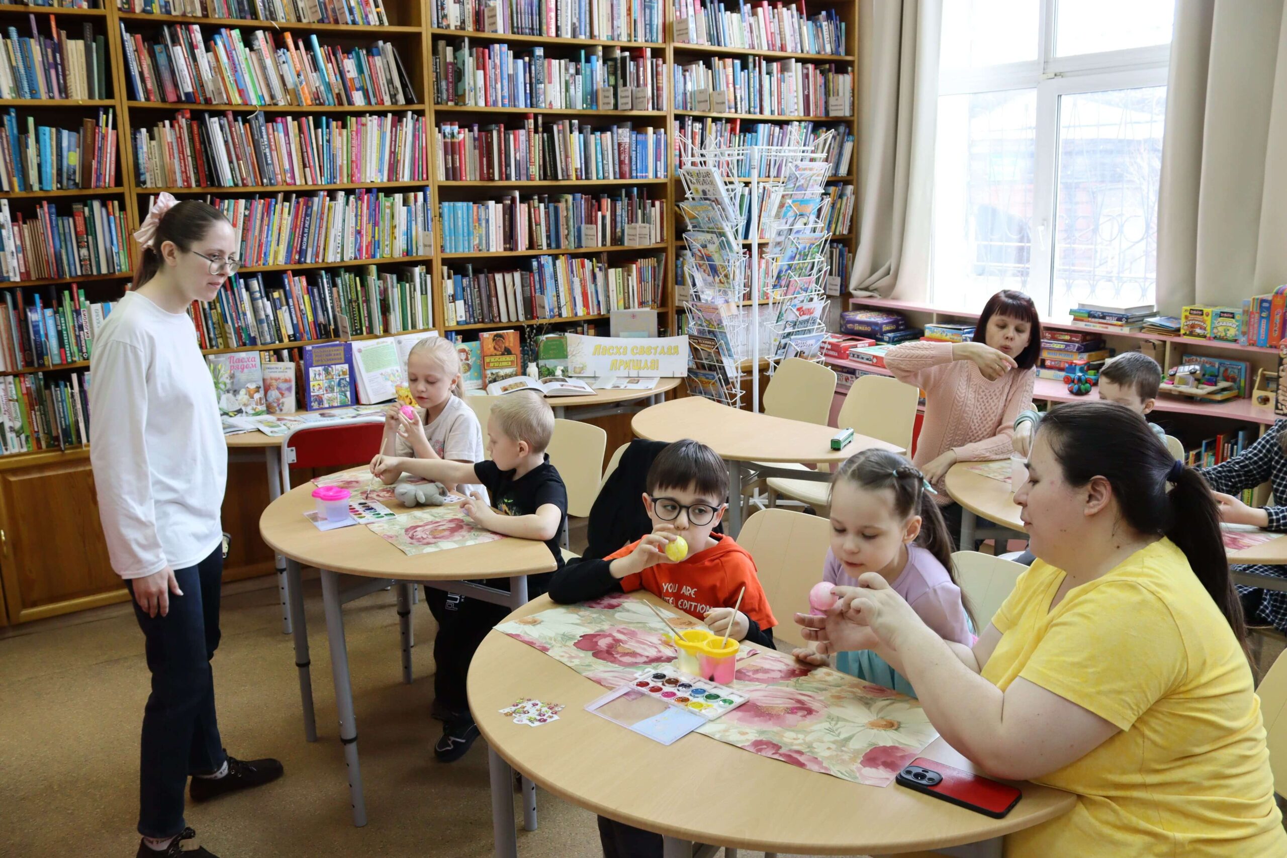 В читальном зале библиотеки для посетителей была доступна книжно-иллюстративная выставка «Пасха светлая пришла!» (6+). Читатели могли ознакомиться с познавательными, энциклопедическими изданиями, книгами для детского творчества, художественными произведениями об истории и традициями праздника Пасхи.