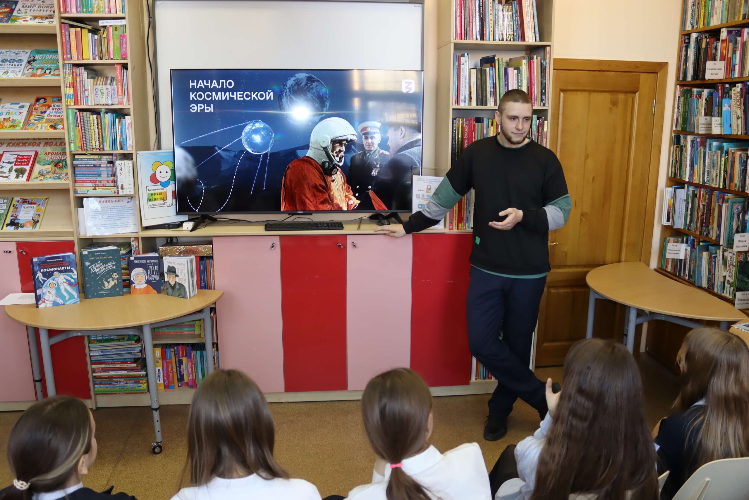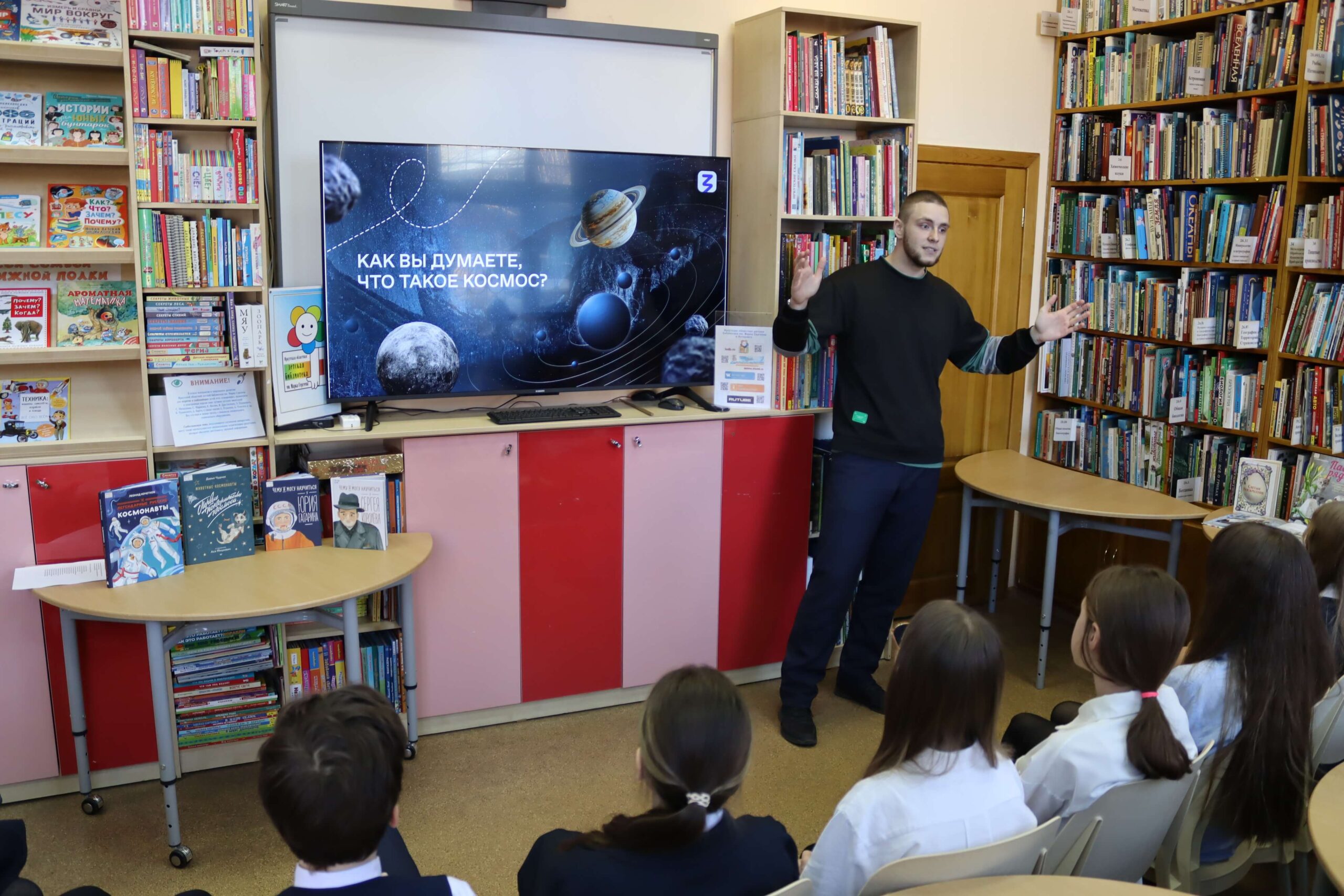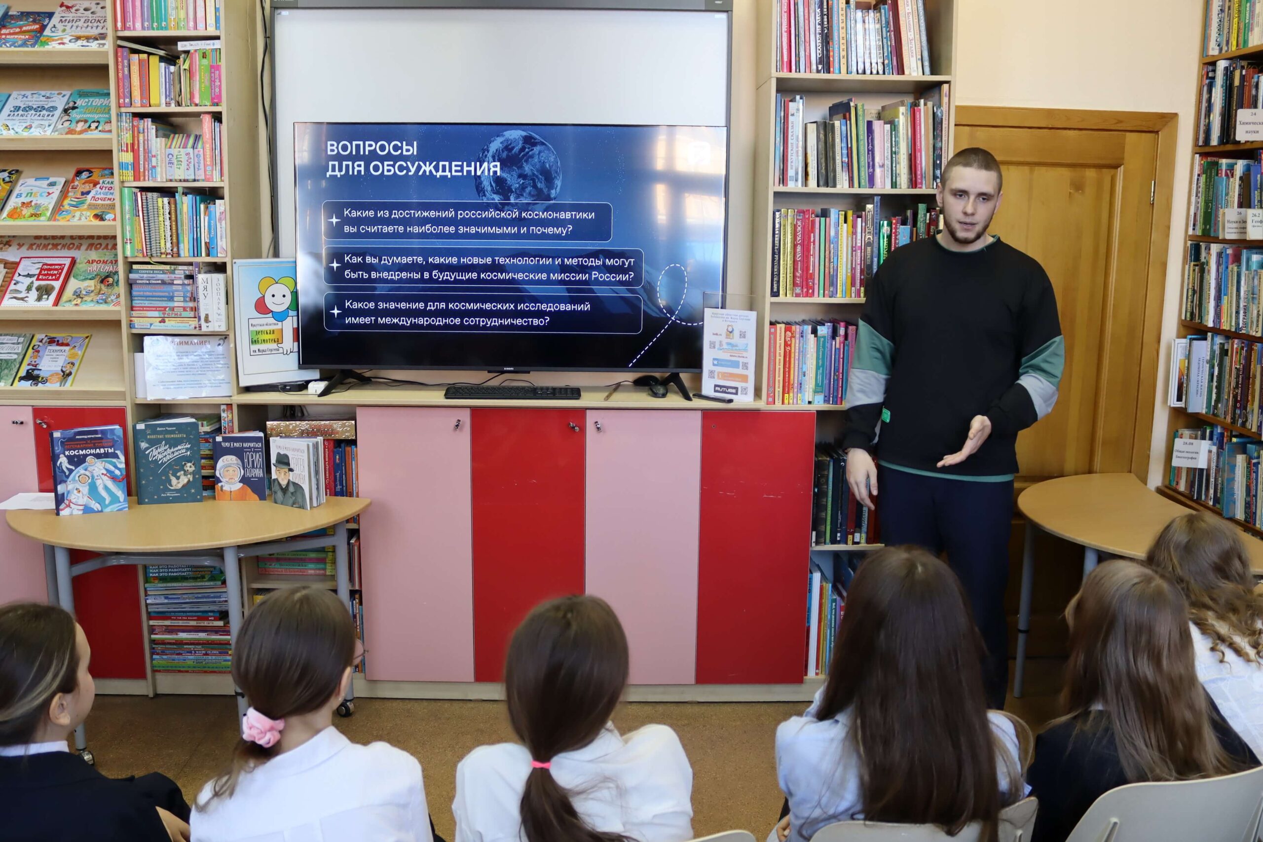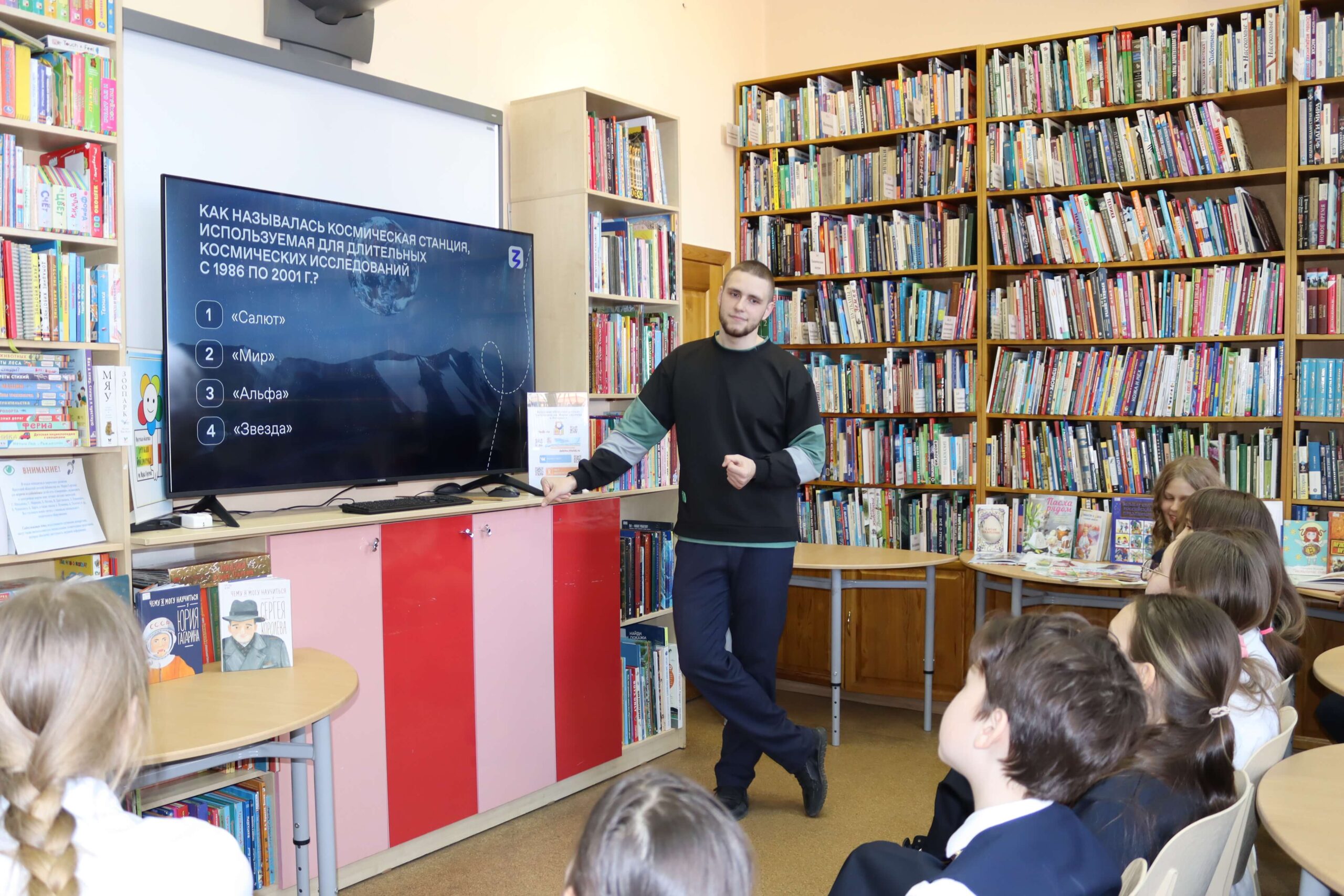 В завершение встречи школьники активно поучаствовали в небольшой викторине о космосе, предложенной лектором, и познакомились с книгами на тематической выставке.